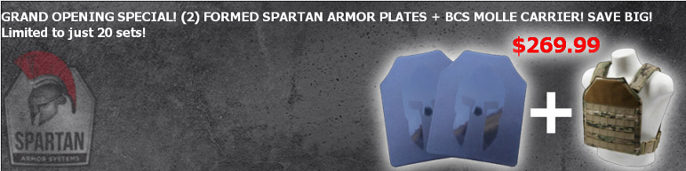 Grand Opening – Spartan Armor Systems is offering a great buy for this event. These plates and plate carriers won’t last long. Limited to just 20 sets!. Watch for the special offer to be made in the next few days.